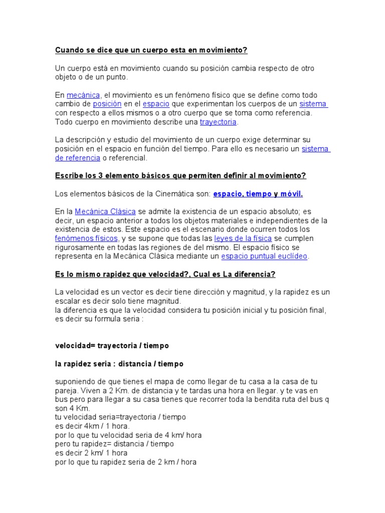 Cuando Se Dice Que Un Cuerpo Esta En Movimiento Velocidad
