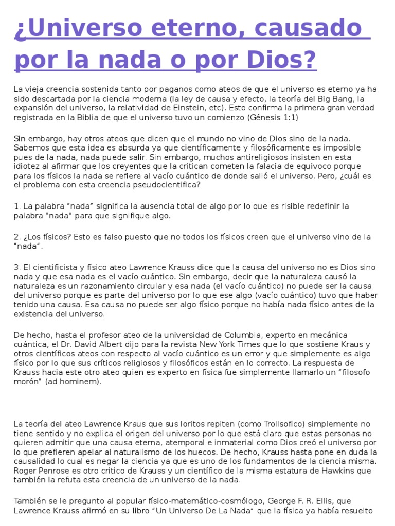 Universo Eterno Causado Por La Nada O Por Dios Ateismo Universo