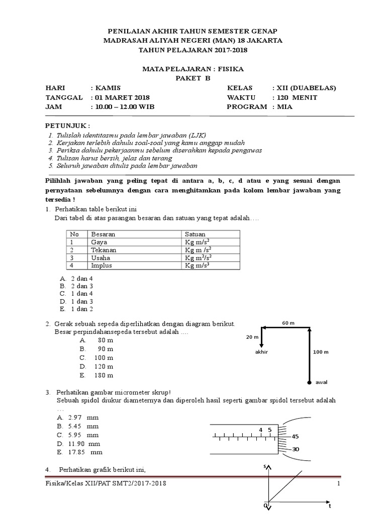 Soal Ujian Akhir Fisika Semester Ganjil Kelas Xii Ipa