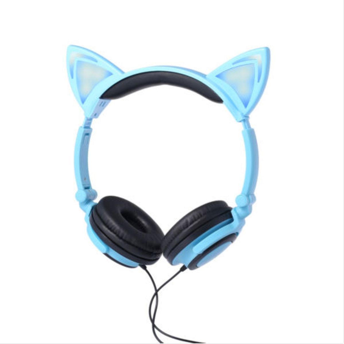 Fone De Ouvido Headphone Gatinho Azul Que Pisca Item De Musica