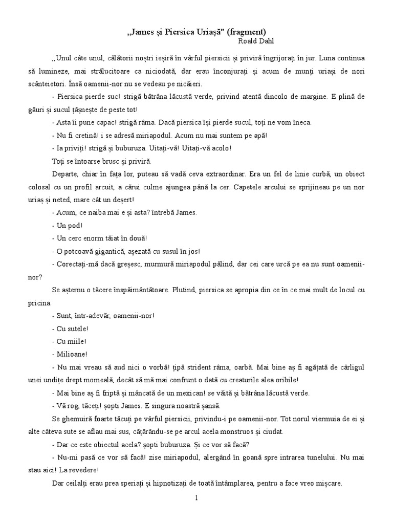 Scrie Expresii Frumoase Din Cartea Textul James și Piersica Uriașă