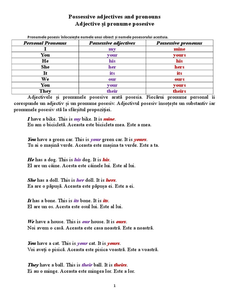 Possessive Adjectives And Pronouns And Exercises Onomastics