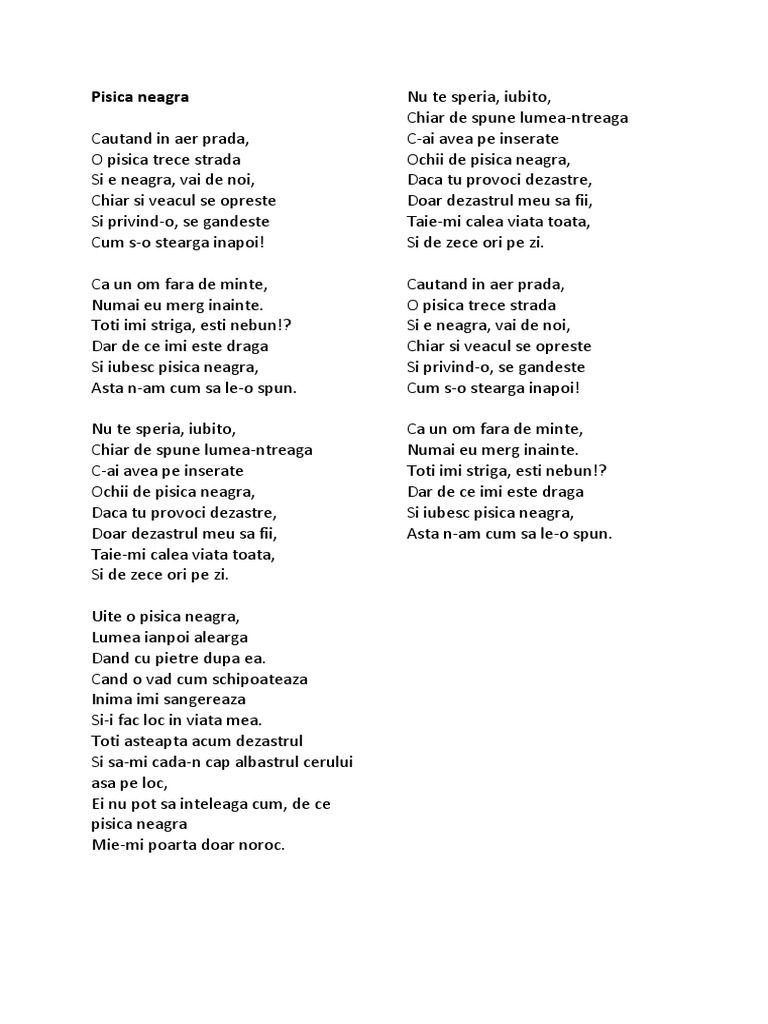 Pisica Neagră Lyrics By Mircea Baniciu Cautand In Aer Prada