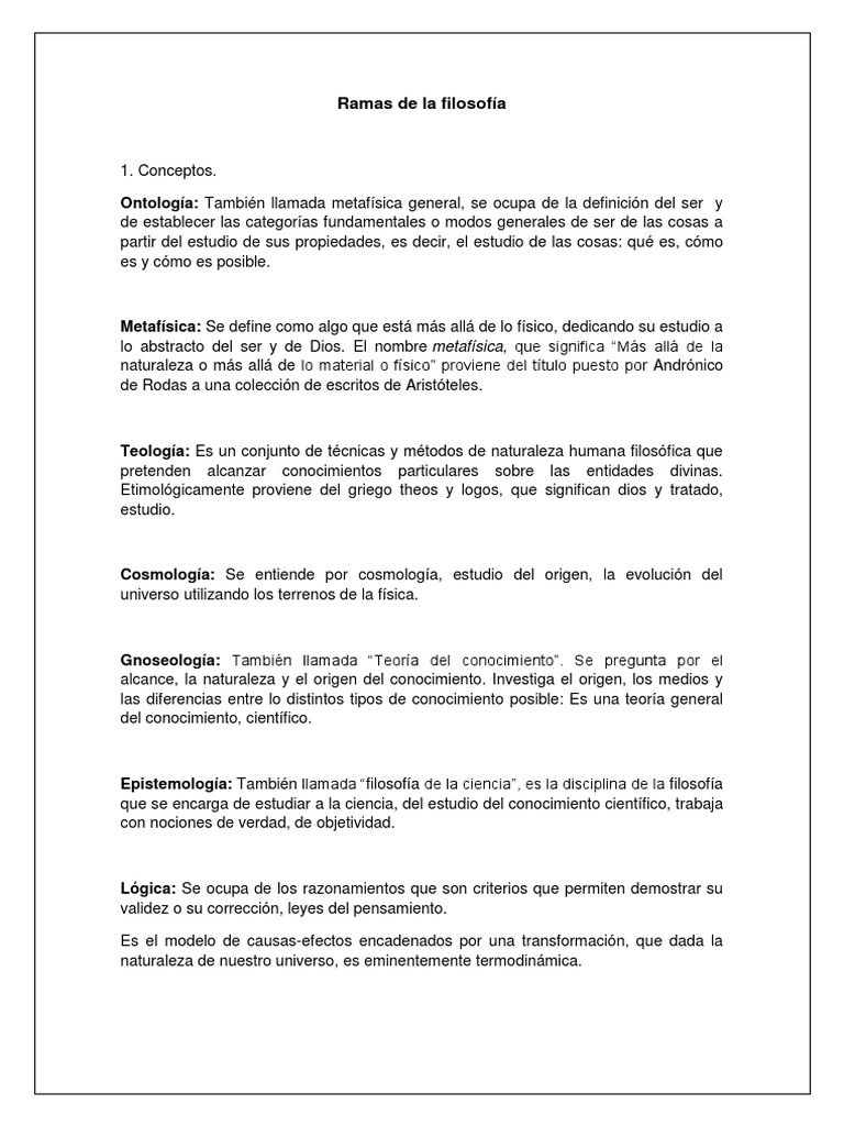 Ramas De La Filosofia Ciencia Metafisica