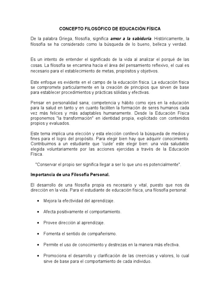Concepto Filosofico De Educacion Fisica Educacion Fisica