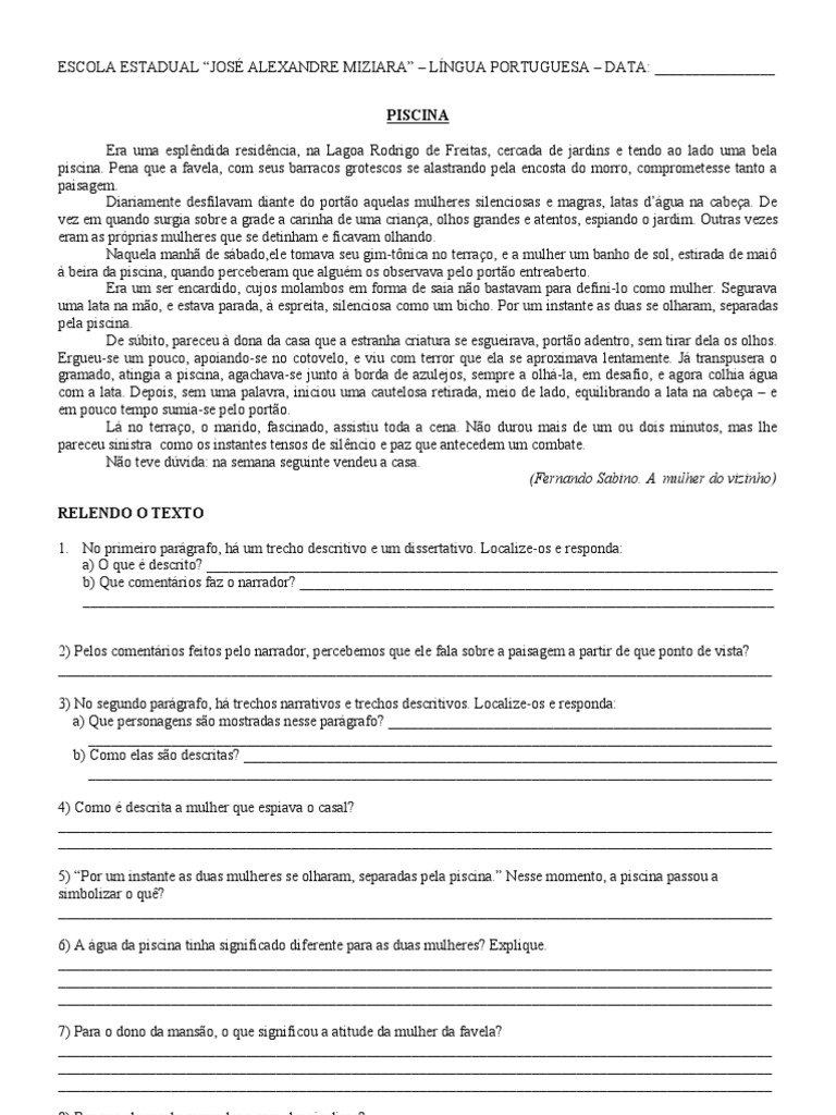 Piscina Desigualdade Social Texto E Proposta De Redacao
