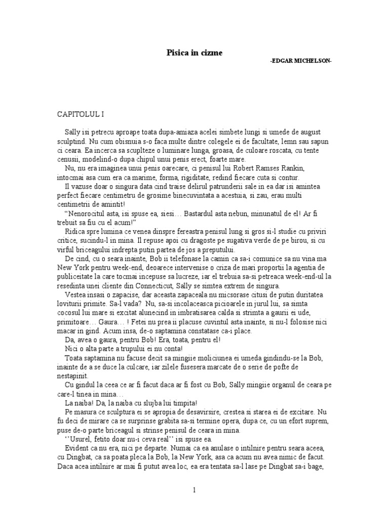 Pisica in cizme. Sally îşi petrecu aproape toată după amiaza acelei sâmbete lungi şi umede de august sculptând. Pisica in cizme e chiar extrem de erotica si vulgara. Pisica in cizme roman erotic edgar michelson alte produse henry troyat etajul bufonilor jocuri erotice la curtea tarinei. Use the download button below or simple online reader.