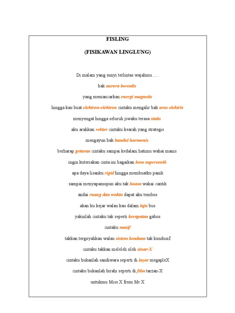 Puisi Cinta Ala Matematika Dan Fisika Docx Document