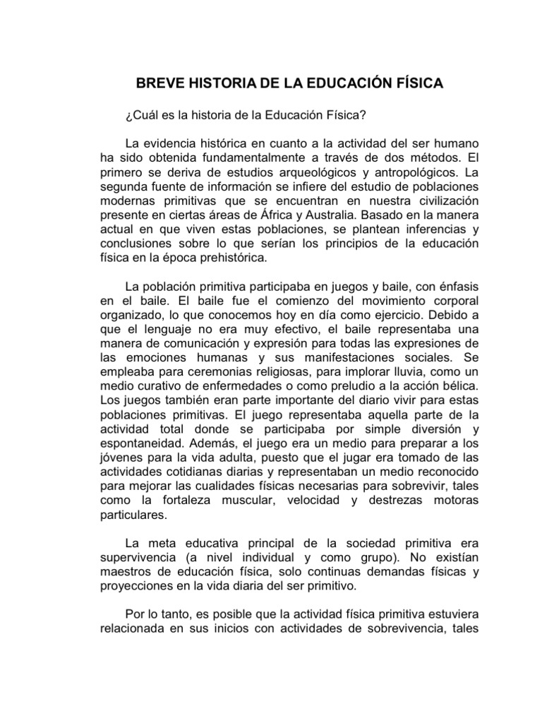 Resumen De La Historia De La Educacion Fisica