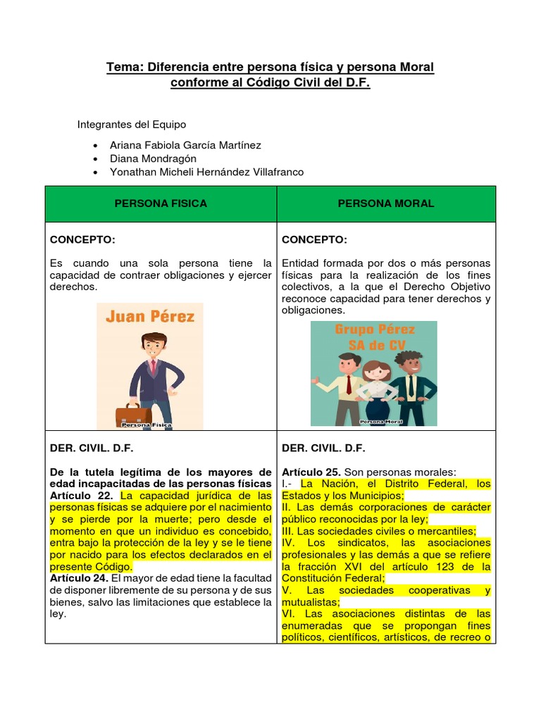 Diferencias Entre Personas Fisicas Y Morales Feva Ruma