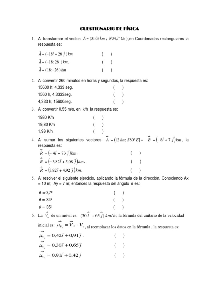 Cuestionario De Fisica Aceleracion Dinamica Mecanica